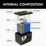 Jump Start Button: Never worry about external jump starting again! Our battery features an internal jump start button, activated in the event of battery discharge or BMS triggering, ensuring hassle-free operations wherever you go.