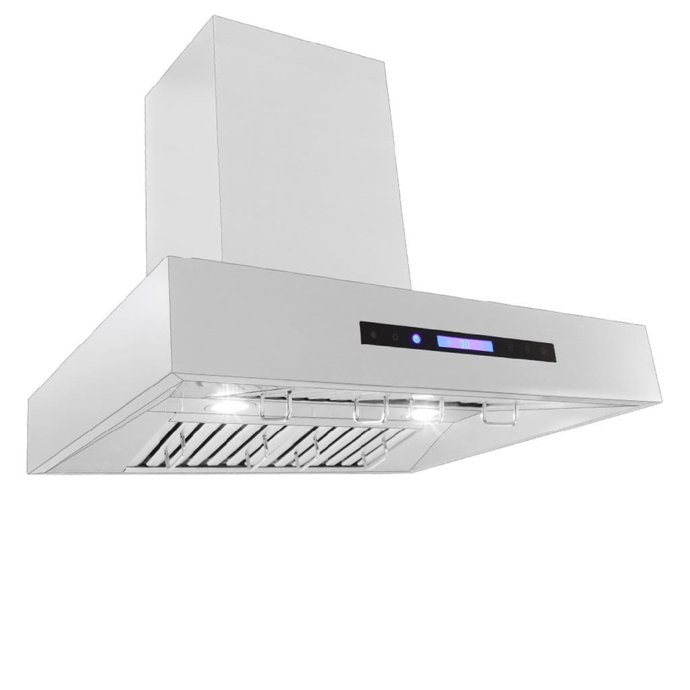 The PLFW 755 is a beautiful island range hood for any kitchen. Manufactured in 430 and 304 stainless steel, this wall hood is durable and stain-resistant. It features a unique rectangular design that will fit seamlessly into your kitchen. The 755 includes a powerful 900 CFM blower that will clean your kitchen air with ease. The four-speed LCD glass control panel is easily accessible in front of the hood and will allow you to cook a variety of food. Our customers love that the lower speeds are incredibly quiet. The PLFW 755 includes bright LED lights that will last you years. The dishwasher-safe baffle filters are built to last too; simply remove them from your hood every few weeks for a quick clean. The PLFW 755 is a sleek wall mounted range hood that will impress your guests.