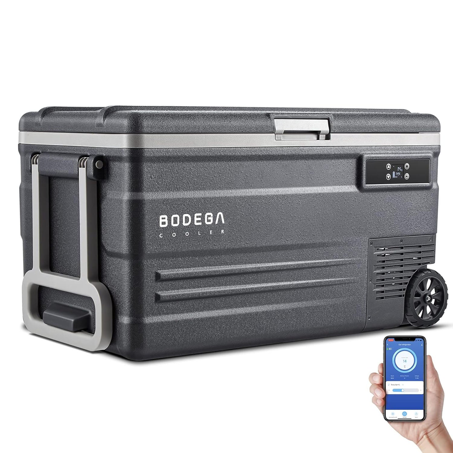 The BODEGAcooler U75-WIFI is a versatile single-zone portable freezer available in 48Qt, 58Qt, 68Qt, and 78Qt sizes, perfect for outdoor adventures or long road trips. Equipped with WIFI connectivity, it allows for easy monitoring and control of your cooler's temperature from your smartphone.