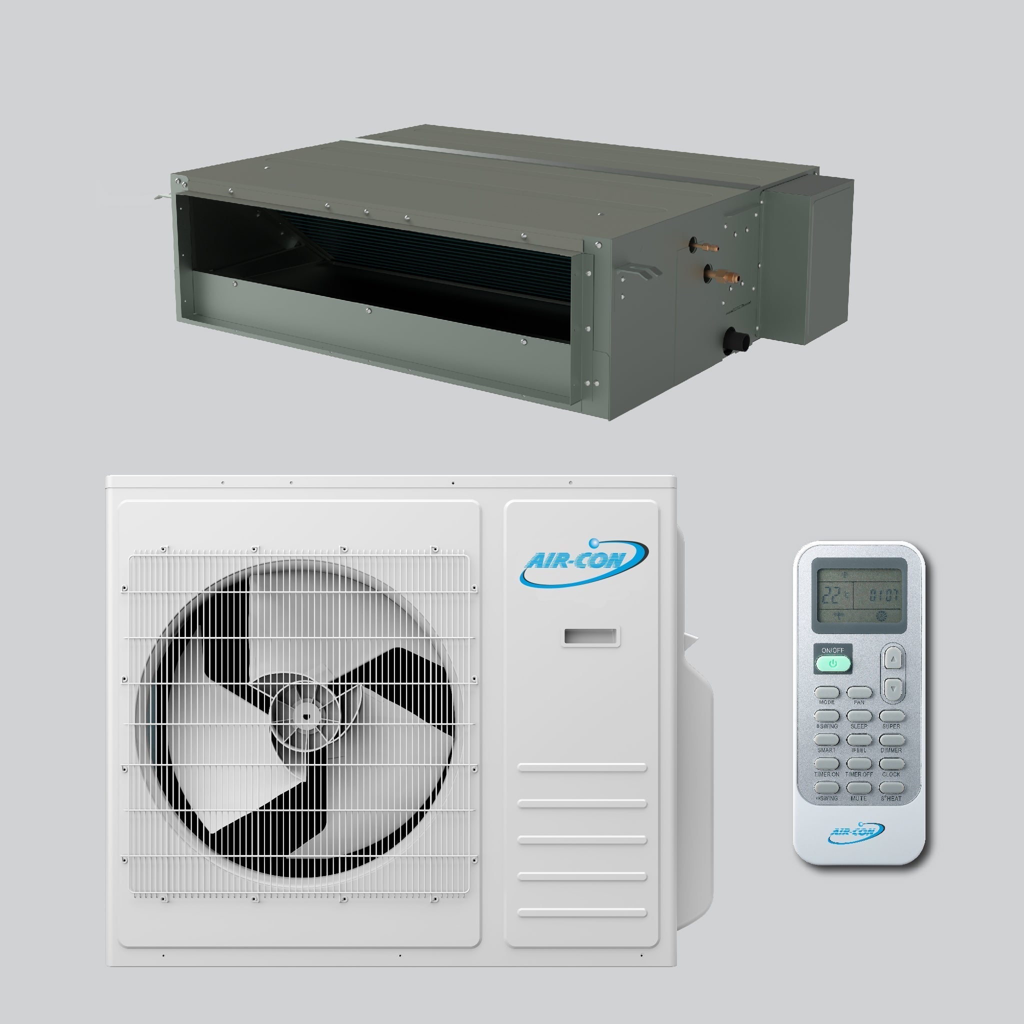 Enjoy year round comfort with the ability to heat or cool your room or space with Air-Con Sky Pro 24000 BTU concealed duct air conditioner.
