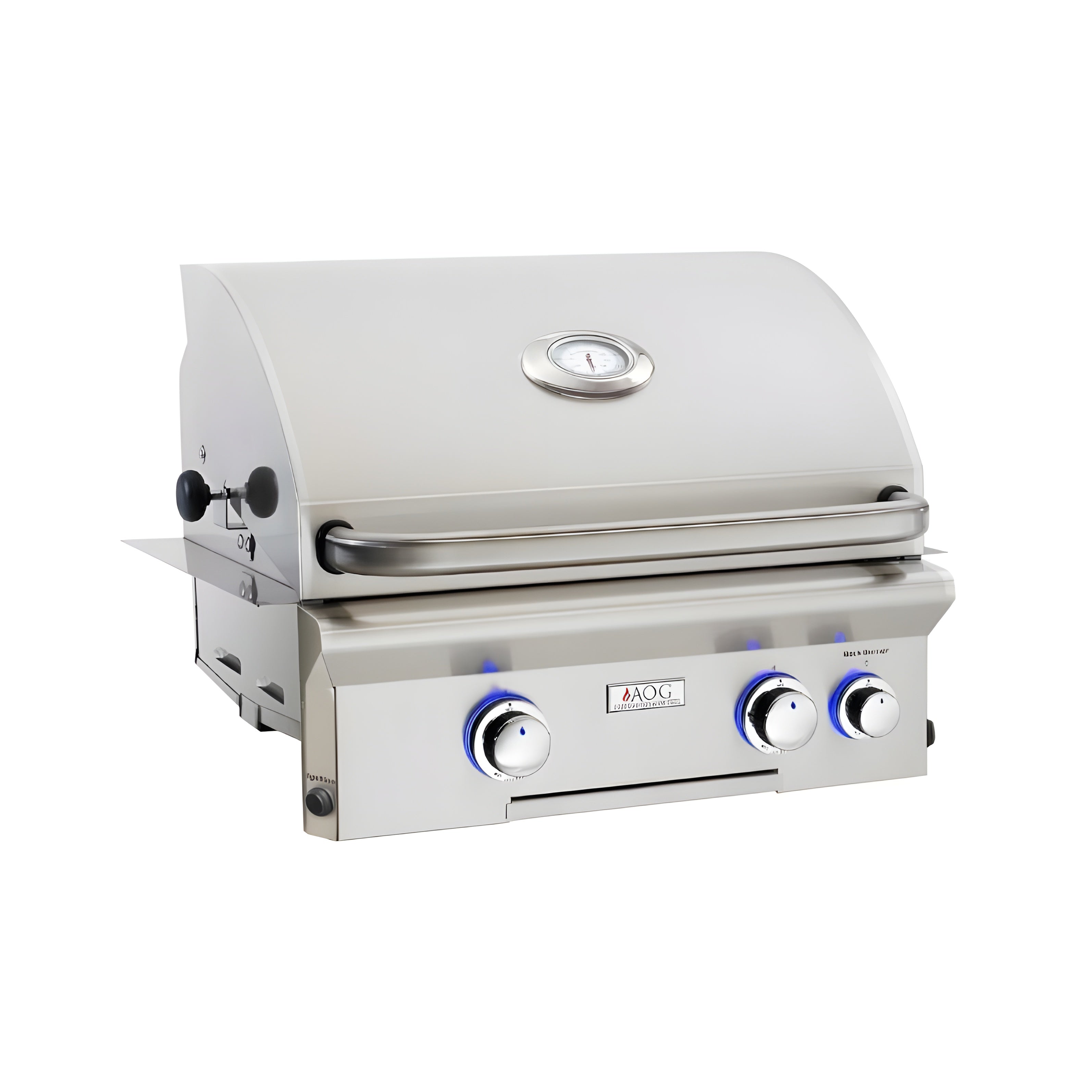 The AOG L-Series 24-Inch 2-Burner Built-In Gas Grill With Rotisserie (Model 24NBL) is the perfect blend of compact design and powerful performance for your outdoor kitchen. Proudly made in the USA, this grill offers superior craftsmanship, elegant styling, and versatile cooking options.