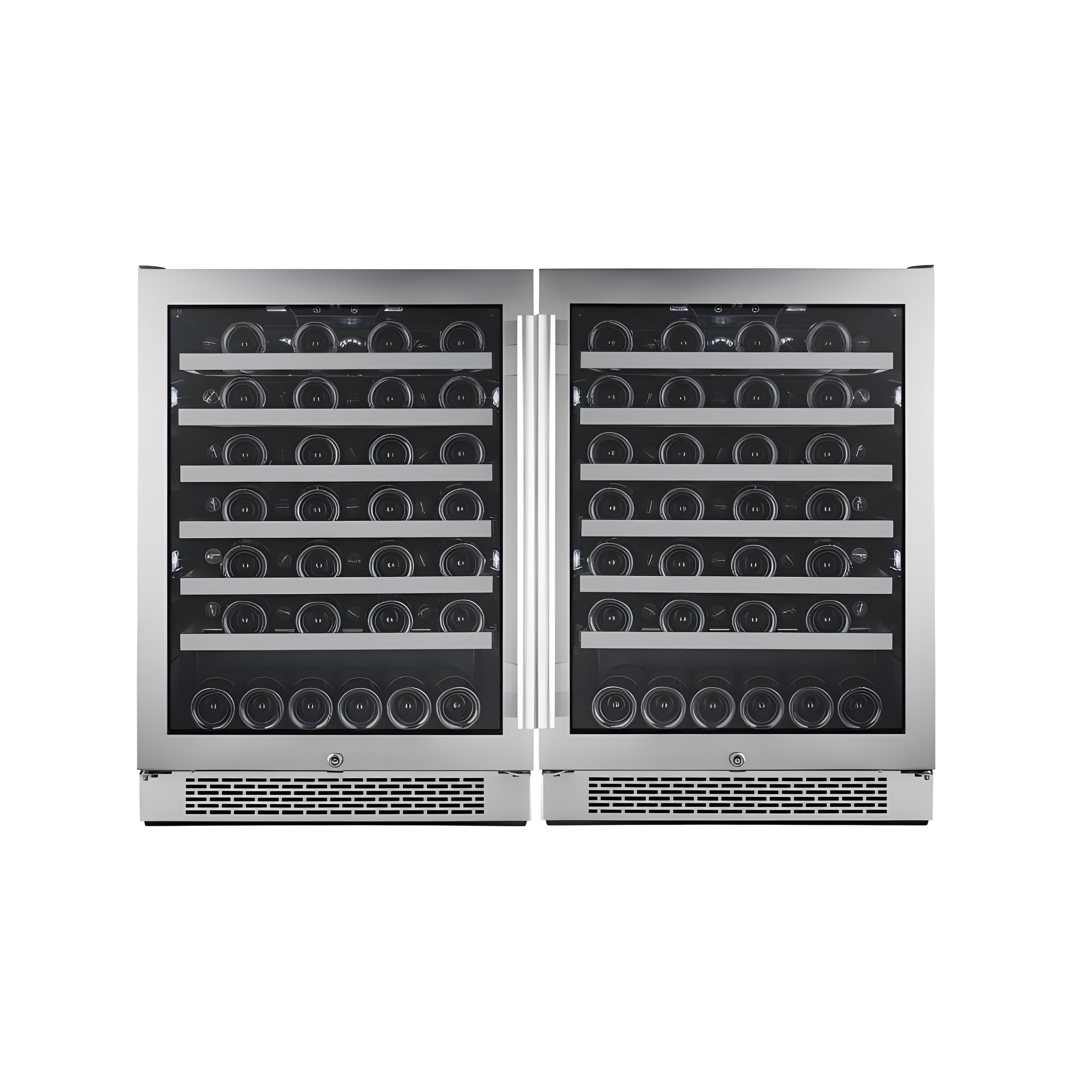 A: A premium dual-zone wine cooler with a 106-bottle capacity, designed for built-in or freestanding use. With two independently controlled temperature zones and secure door locks, it’s ideal for collectors looking to store a large, diverse wine selection..