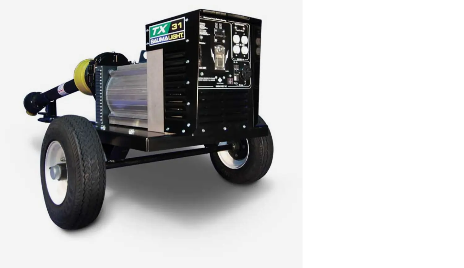 Built to last and designed to perform, the TX Series includes pneumatic trailer tires for smooth transport across various terrains, ensuring durability and ease of movement. The integrated Display Meter and Reset Circuit Breakers provide operational convenience and safety, preventing damage from power surges while allowing for efficient monitoring and adjustments directly from your tractor seat. With these features, the Baumalight TX Series stands out as a robust, user-friendly power solution for today's modern farmer.