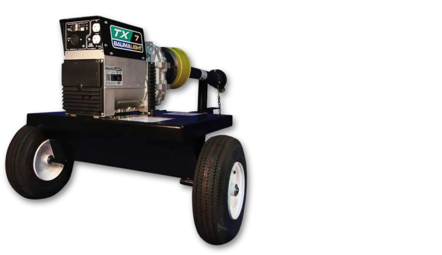 Built to last and designed to perform, the TX Series includes pneumatic trailer tires for smooth transport across various terrains, ensuring durability and ease of movement. The integrated Display Meter and Reset Circuit Breakers provide operational convenience and safety, preventing damage from power surges while allowing for efficient monitoring and adjustments directly from your tractor seat. With these features, the Baumalight TX Series stands out as a robust, user-friendly power solution for today's modern farmer.