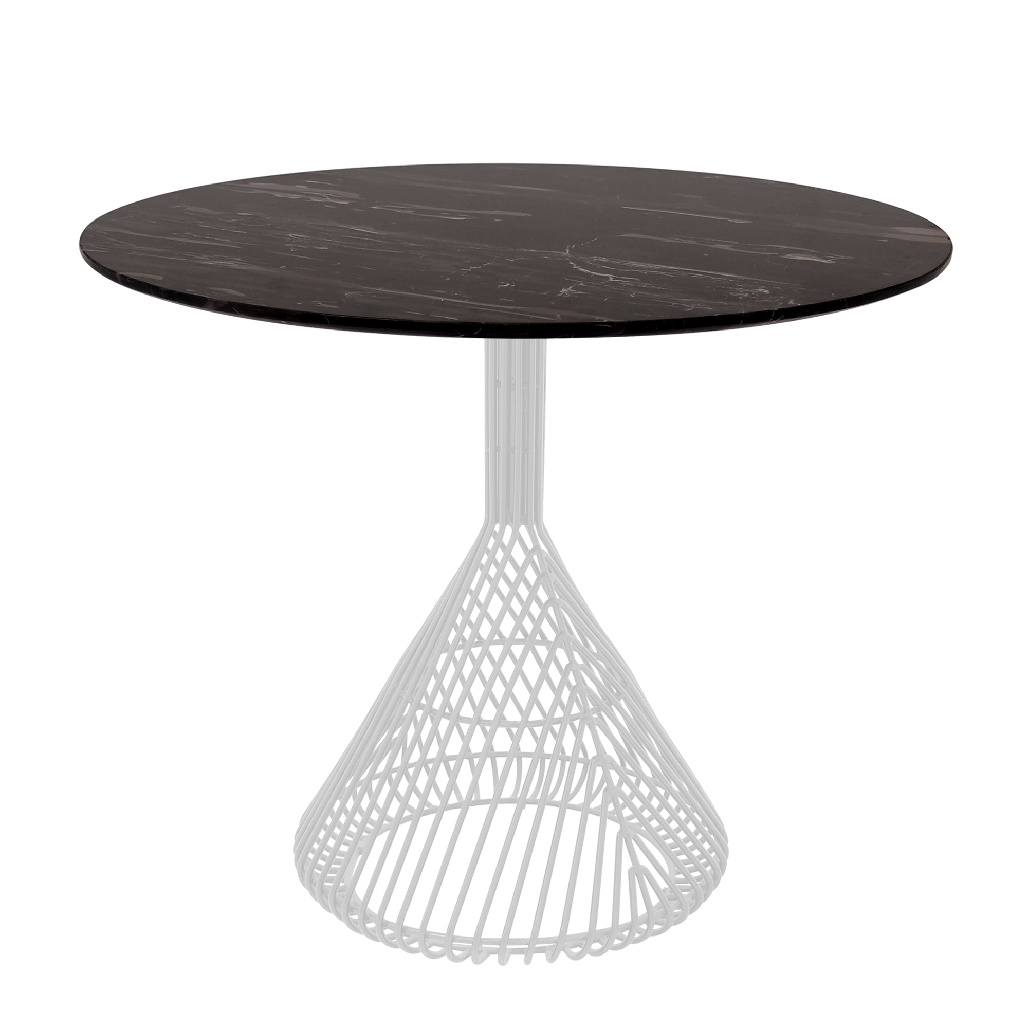 The Bend Goods Bistro Table offers a modern reimagining of the classic bistro design, featuring a compact conical wire base paired with a striking marble top. This blend of industrial metal and elegant marble creates a visually captivating piece that is both functional and stylish. Ideal for both indoor and outdoor settings, this table adds a playful, contemporary touch to any space. Its compact size makes it perfect for smaller dining areas, while the bold design ensures it remains a standout feature in any room.