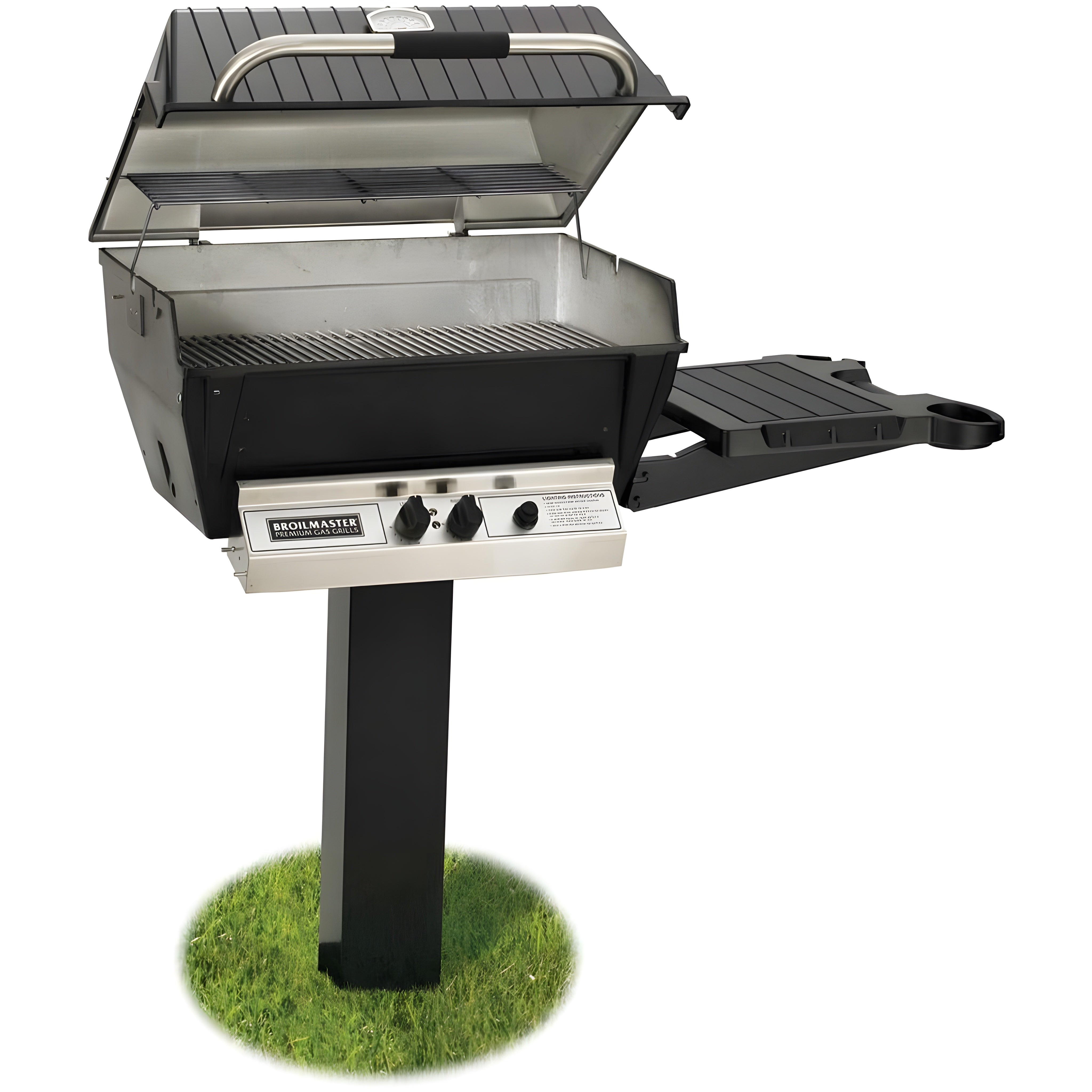 Elevate your outdoor cooking with the Broilmaster Deluxe Series 27" In-Ground Natural Gas Grill. Featuring Broilmaster's solid cast aluminum grill head and a powerful 40,000 BTU stainless steel H-style burner with independent controls, this grill delivers exceptional heat distribution and cooking versatility. The sturdy single-level solid stainless steel cooking grid and chrome-plated warming rack ensure your meals stay warm and flavorful. Ideal for any outdoor space, this grill includes a convenient black in-ground post and drop-down side shelf.