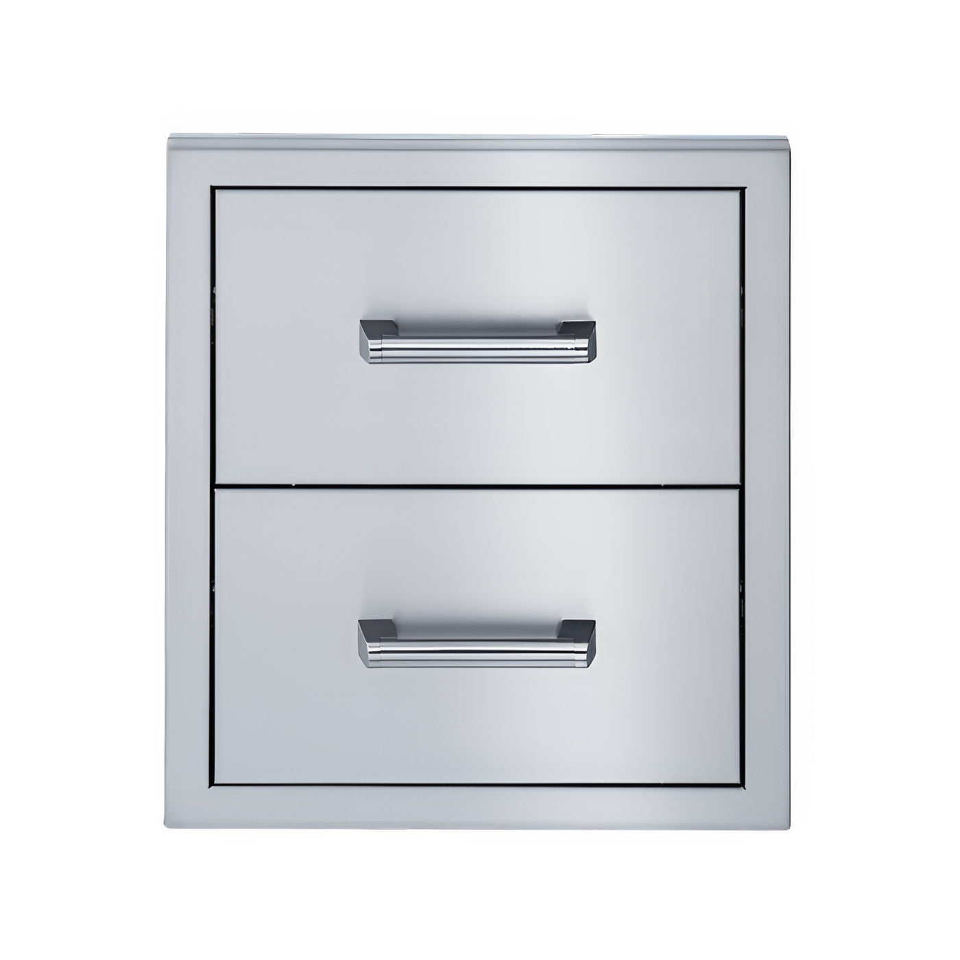 Maximize the organization of your outdoor kitchen with the Broilmaster 20-inch wide double drawer, meticulously crafted from premium 304 stainless steel for enduring quality and weather resistance. These dual drawers offer ample storage space while enhancing the aesthetic appeal of your grilling area. Each drawer is equipped with a soft-close mechanism, ensuring smooth and quiet operation to protect stored items and extend the drawers' lifespan.