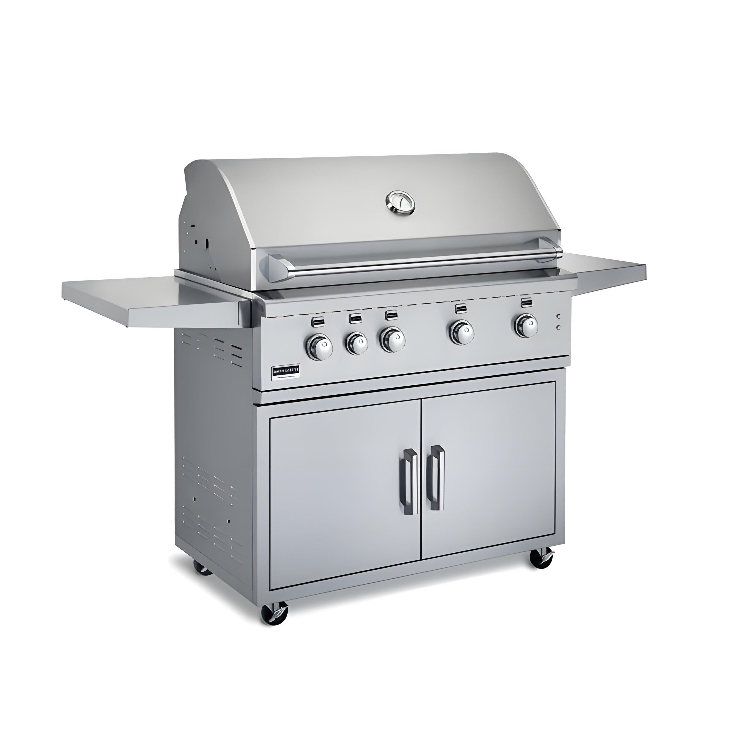 Cast Stainless Steel Burners: Five 14,000 BTU burners for powerful cooking.