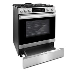Elevate your kitchen with the sophistication of the Cosmo COS-GRC305KTD gas range. This 30 in. range brings professional styling and quality to any kitchen, with a seamless blend of functionality and aesthetics. Equipped with 5 sealed burners, you gain precise control over cooking temperatures. The expansive 6.1 cu. ft. convection oven enhances your cooking versatility, utilizing a fan to distribute heat evenly and cook foods faster. Select from a range of oven functions, including air fry, to cook your favorite dishes faster and with less oil than conventional frying methods. Crafted with heavy duty cast iron grates and industrial, corrosion-resistant stainless steel, this range ensures reliable and durable performance for your culinary needs. Make cleanup easy with the oven’s self-clean function, save time and energy in the kitchen.