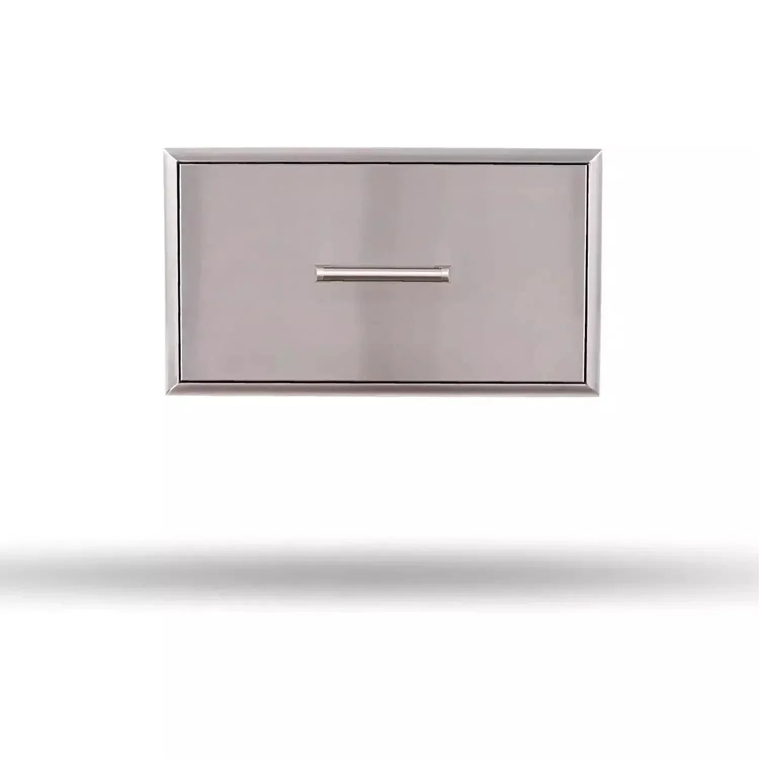 Coyote Stainless Steel Single Storage Drawer, 28-Inch (CSSD28) provides a premium storage option for your outdoor kitchen. With 304 stainless steel construction, this quality unit offers a sharp appearance and superior durability. This high-quality access drawer features a sleek, modern design and beveled trim for a high-end and professional appearance while providing a convenient storage option directly in your grill island, while the full-extension drawer supplies smooth operation for a high-end feel.