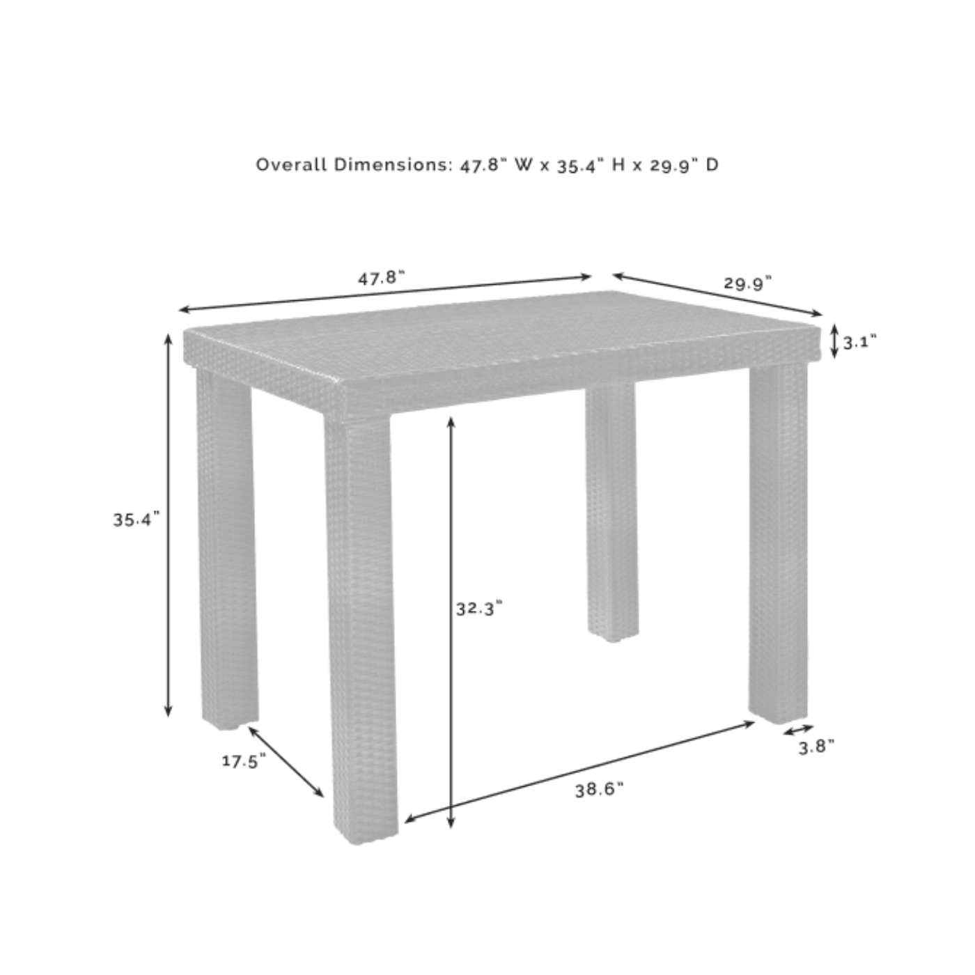 Q: What is the Crosley Palm Harbor 48-Inch Outdoor Wicker High Dining Table?