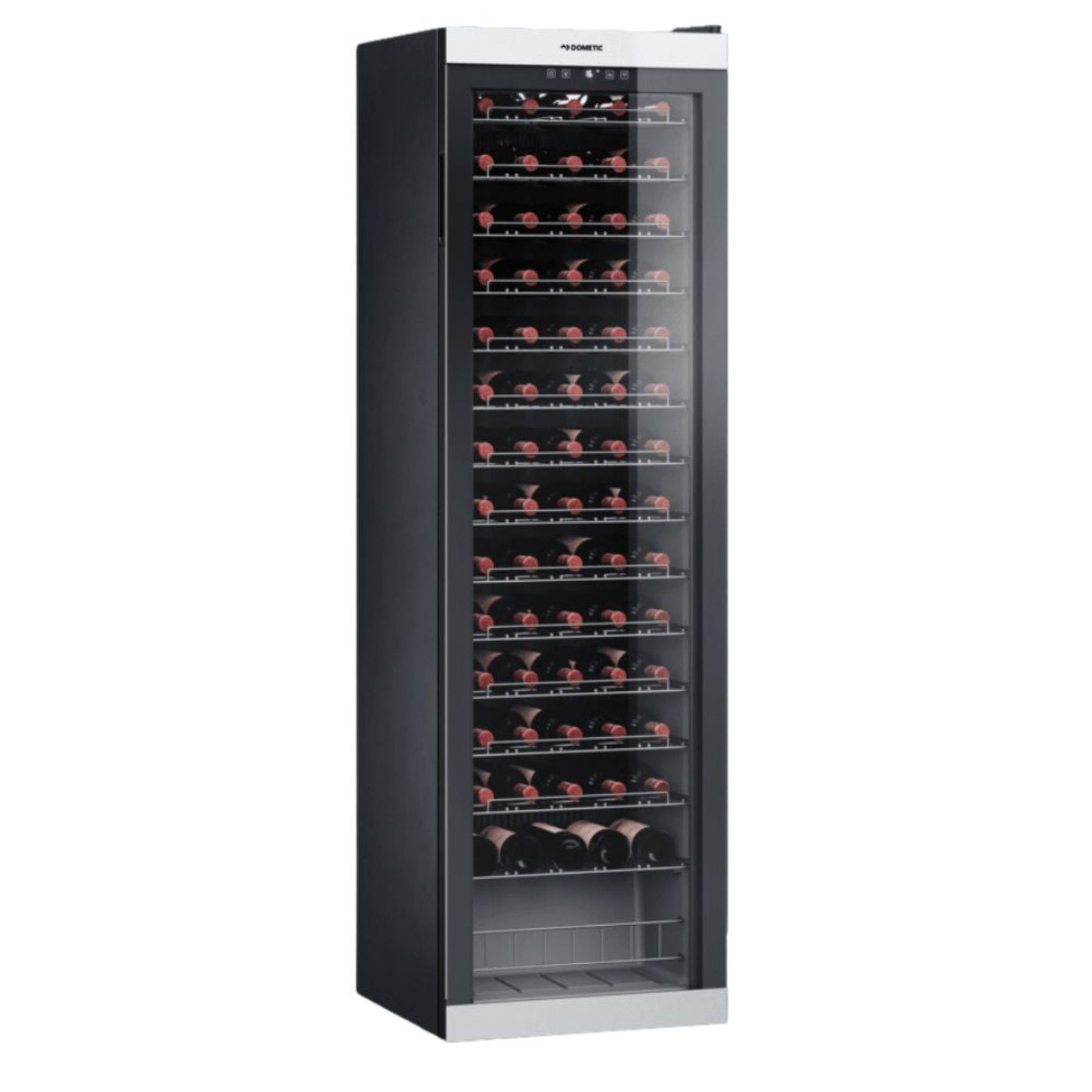 Introducing the Dometic Wine Cooler C75F, a 19-inch single-zone wine cooler that combines elegance and functionality for any home, restaurant, or hotel bar. This freestanding cooler boasts a generous capacity of 75 Bordeaux bottles, ensuring optimal storage and aging conditions. With temperature control settings conveniently located on the door, you can easily maintain a range of 41°F to 72°F. The stylish triple-pane glass door, featuring stainless steel accents and a space-saving built-in handle, enhances its sleek design. Inside, a white LED light softly illuminates your collection, while the integrated air circulation system ensures even temperature distribution. Enjoy minimal maintenance with the auto defrost system.