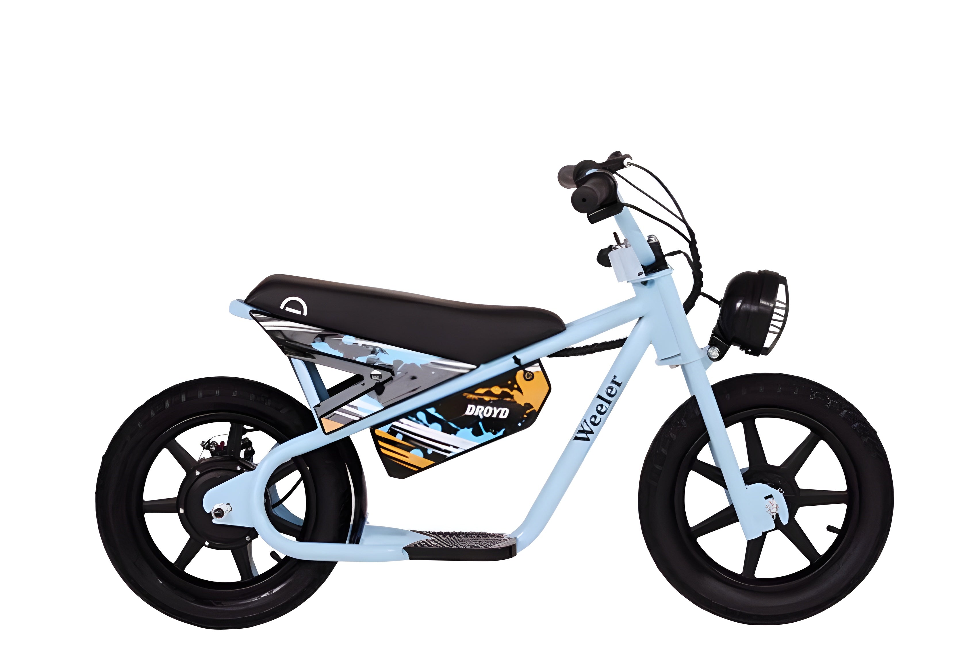 The Droyd Weeler is a fun and safe electric bike for ages 6 and up that's ready to take your growing rider on all sorts of adventures. Simple to set up and ride, the Weeler is equipped with a lithium-ion battery that runs for up to 45 minutes, and two maximum speed limit settings of 6.2 mph (low) and 10 mph (high) using the parental control speed limit key. With safety as the top priority, the Weeler includes parental speed controls, slow start mechanism, brushless motor, and an easy-to-use accelerator throttle.
