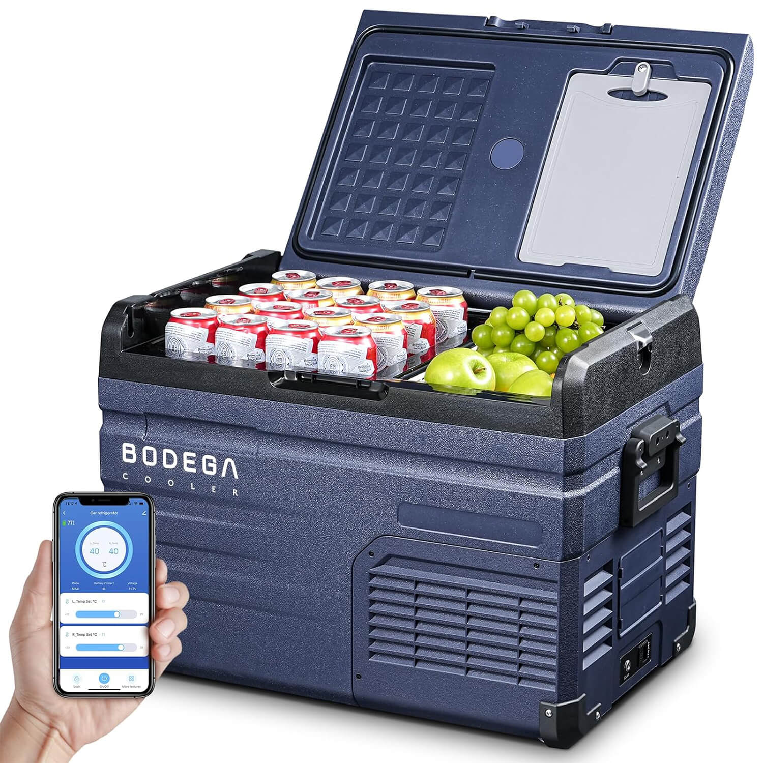 DUAL ZONE AND APP CONTROL CAR FRIDGE: BODEGACOOLER 12Volt refrigerator features two zones that can be independently controlled for temperature. This powerful RV fridge offers various capacity options to meet your different food storage needs. Choose which side to use as the freezer or fridge zone. Our portable car refrigerator supports App or manual control (for Android and iOS).