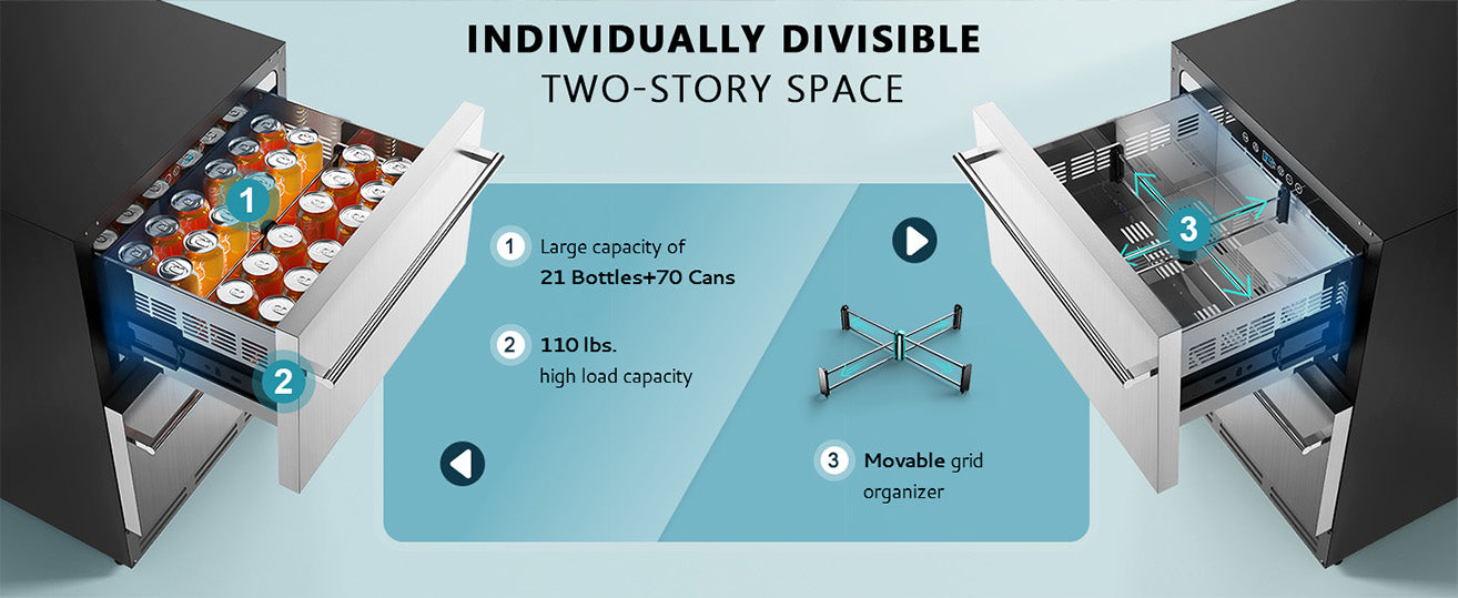 Q: What is the capacity of the EUHOMY 24 Inch Under Counter Double Drawer Fridge?