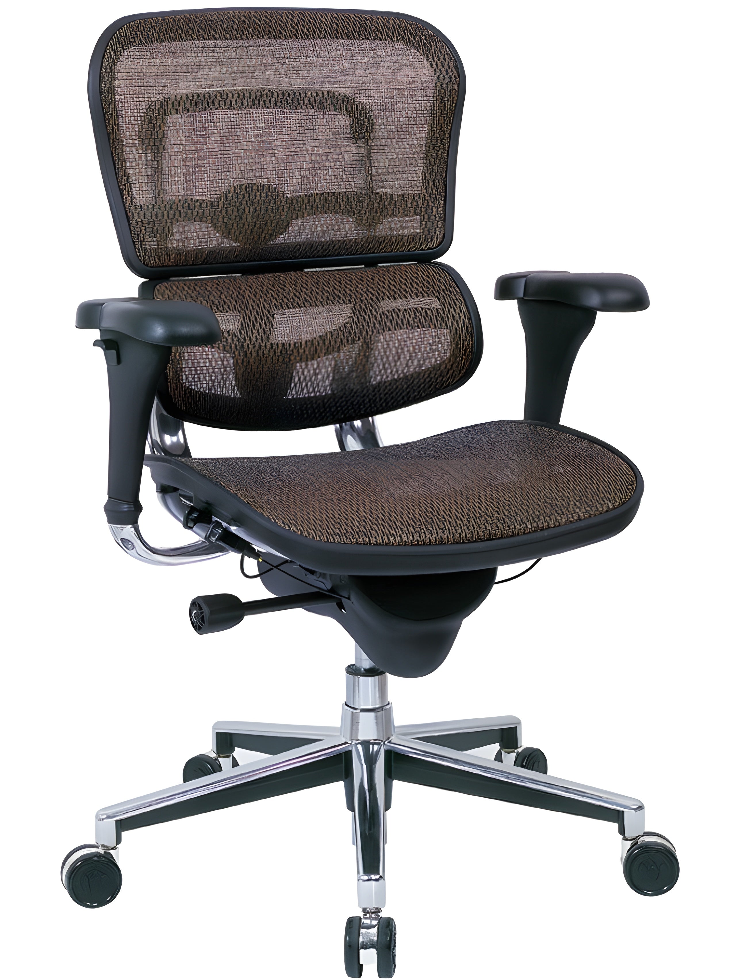 All over classic Black mesh seat and back. The ErgoHuman all mesh computer chair is 97% post-use recyclable.
