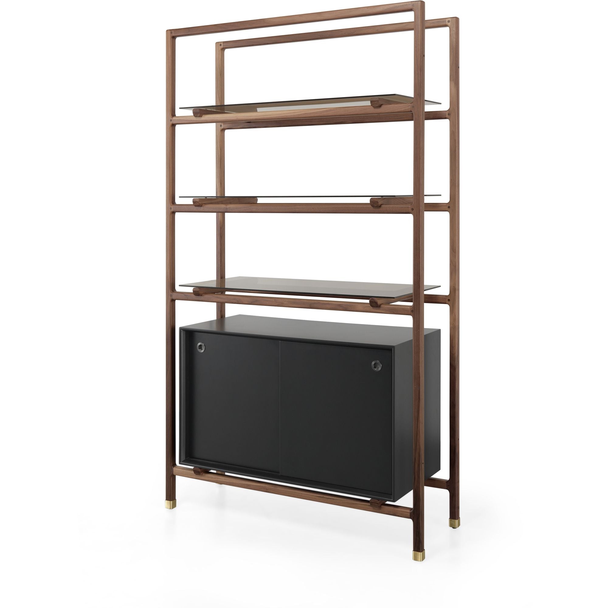 The WeWOOD Float Bookshelf brings a sophisticated blend of craftsmanship and modern design to any space. Inspired by the art of joinery, this shelving system combines minimalism with a Scandinavian expression. The smoked glass shelves and cabinets rest elegantly on a light solid wood structure with metal feet, creating the illusion of floating. This design not only serves a functional purpose but also adds a striking visual appeal to your home or office.