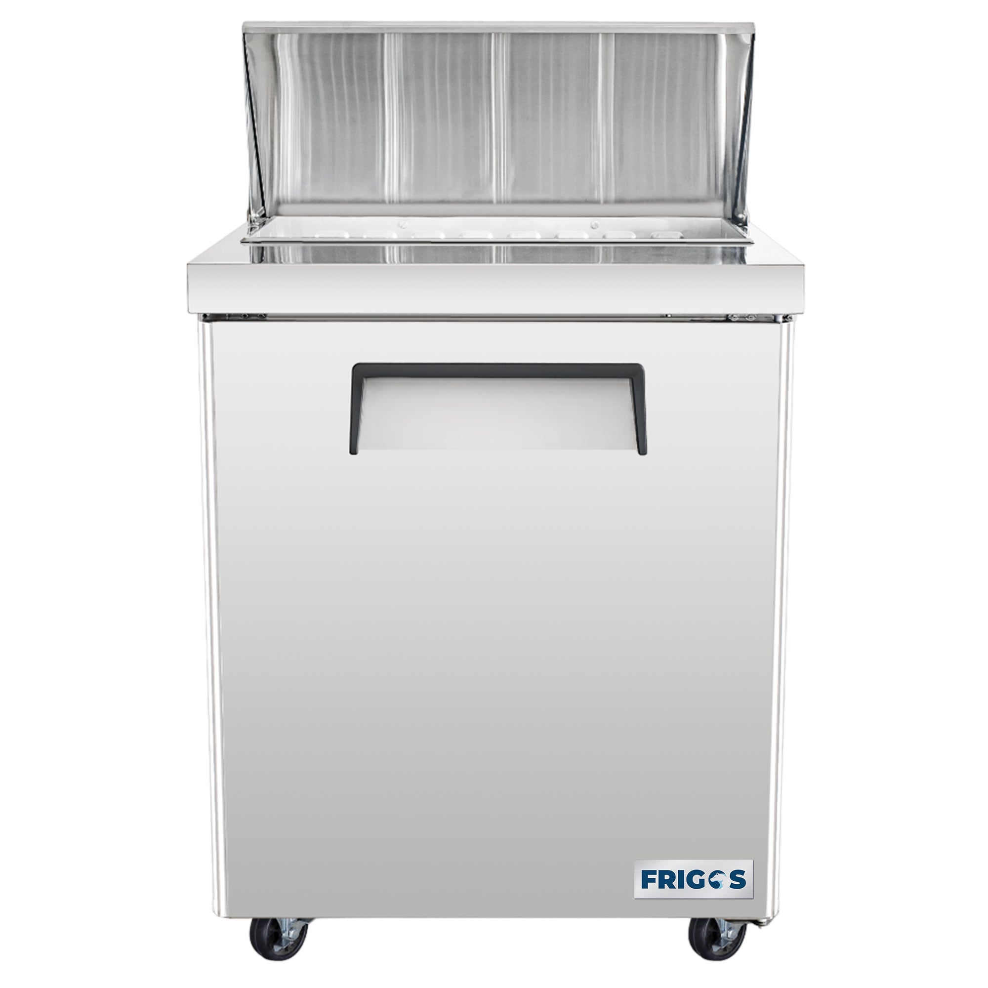 Introducing our premium 29" salad sandwich prep table refrigerator, the Frigos FG-SWPT-29. This meticulously designed unit delivers outstanding performance and reliability for your commercial kitchen. With precise dimensions of 29 inches in width, 30 3/8 inches in depth, and 45 3/8 inches in height, it provides ample space for your culinary needs.