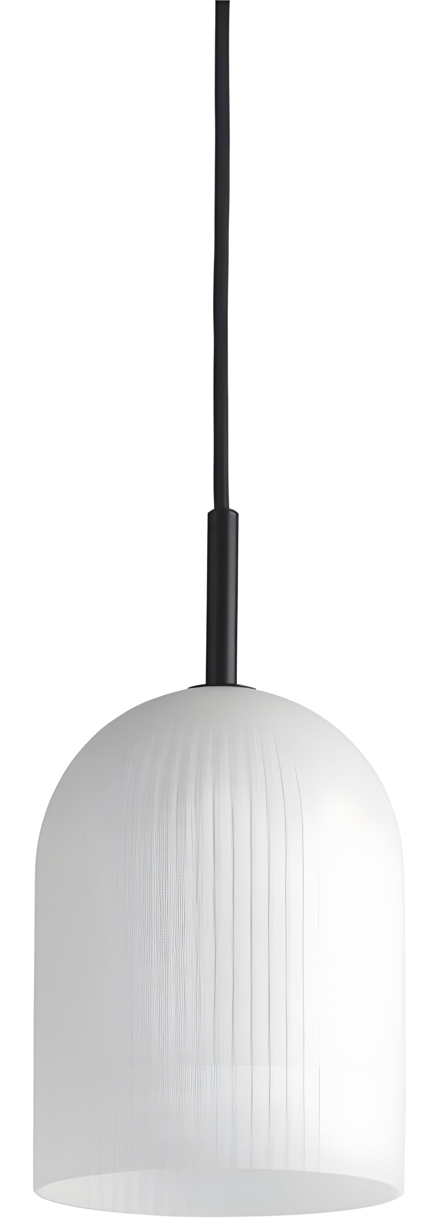 A: It is crafted from high-quality translucent opal glass with a subtle vertical groove pattern.