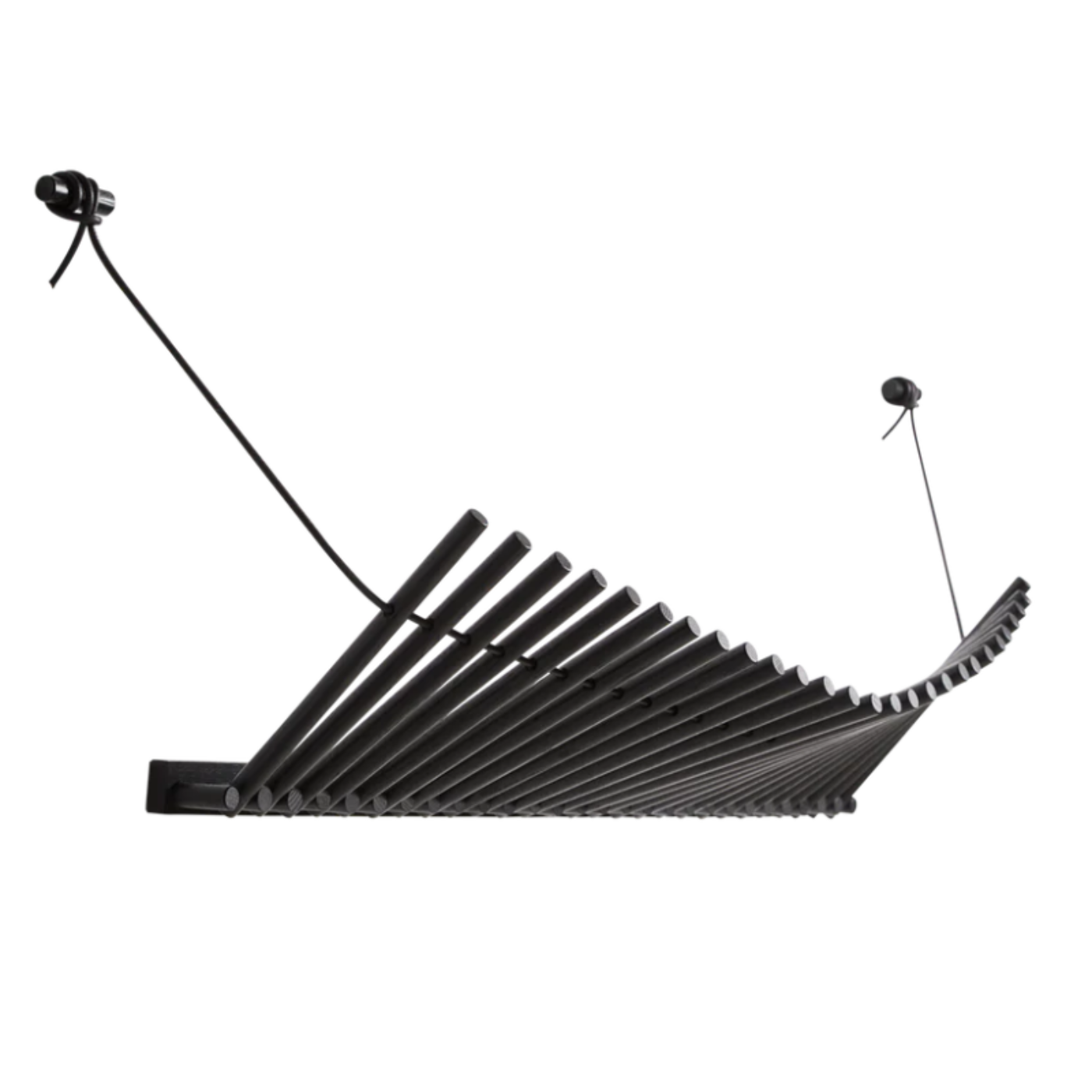 Functional & Flexible: Each wooden peg functions as a hanger, while the adjustable leather strap allows the rack to shift in shape depending on what's hung—combining utility with subtle motion.