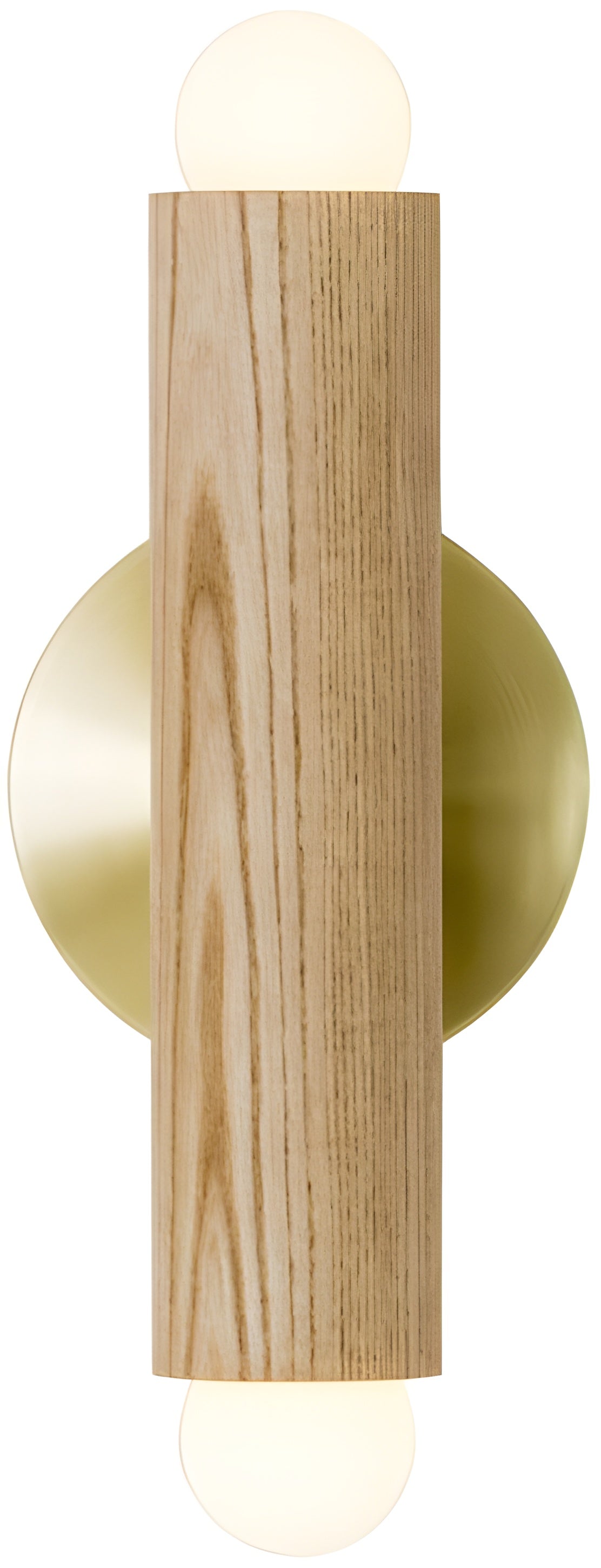 The oak cylinder body introduces natural texture, softening modern interiors.