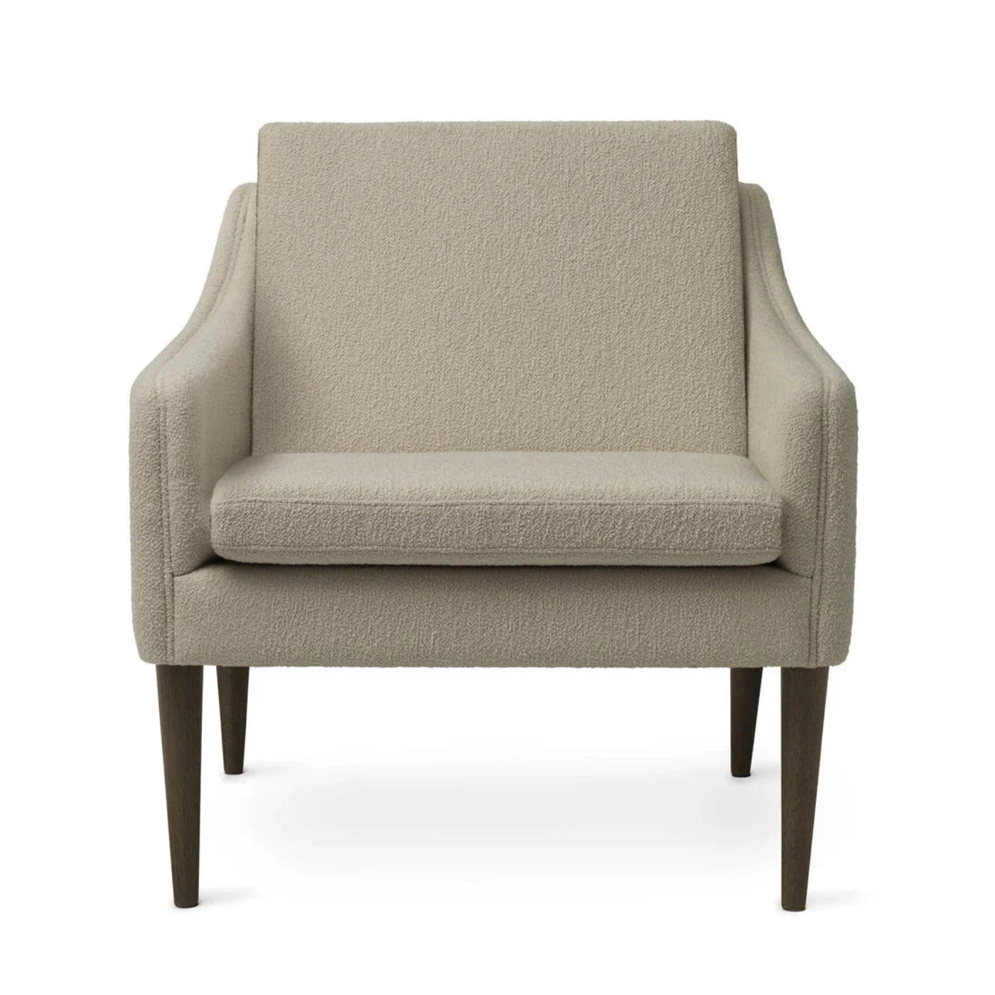 Mid-Century Elegance: The Mr. Olsen Lounge Chair, originally designed by Hans Olsen in 1958, captures the essence of Danish modernism with its refined silhouette, organic curves, and slender wooden frame.