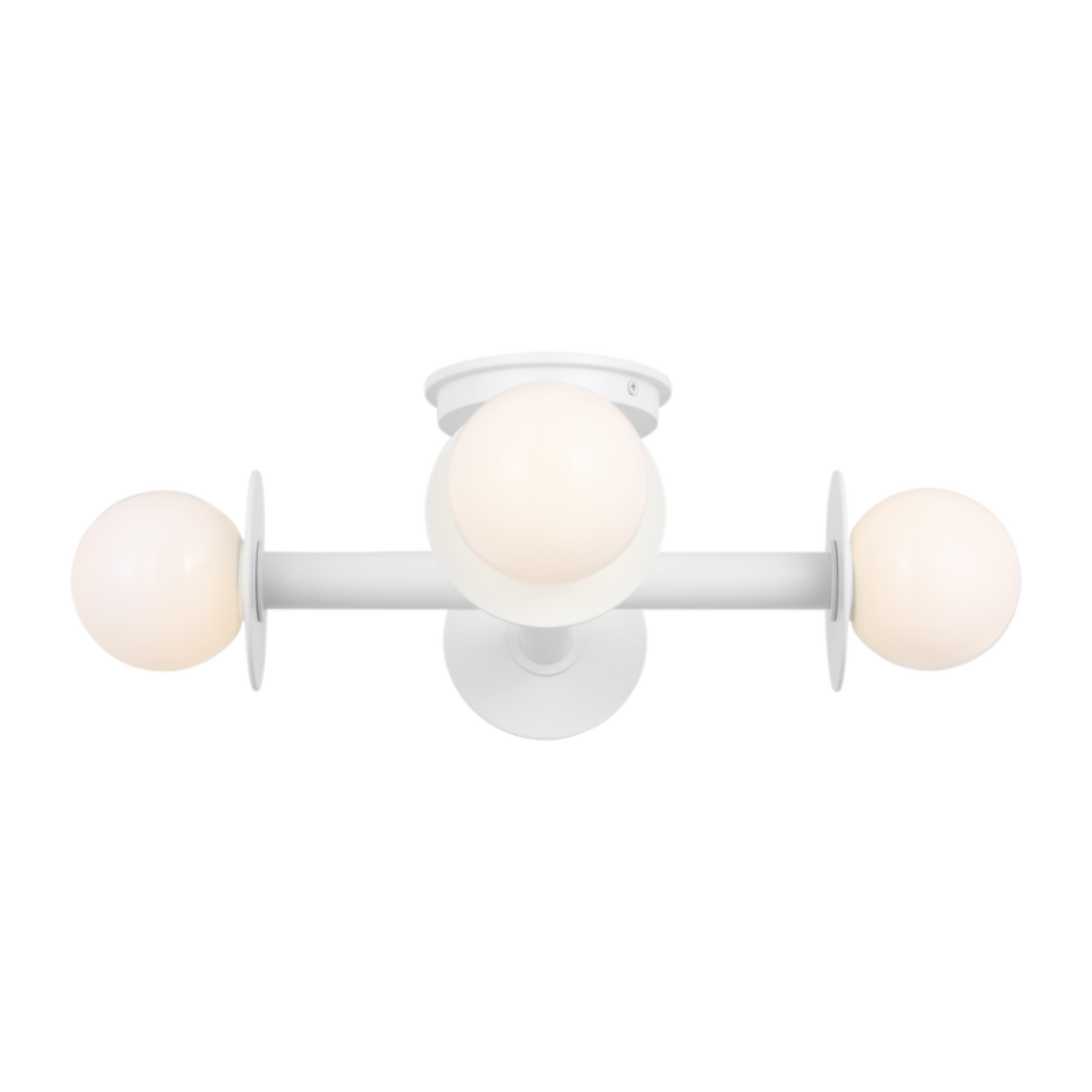 Experience adaptable lighting with the Nodes Semi-Flush Mount. This versatile fixture features milk glass globes set against optional metal discs, offering two distinct looks. The minimalist yet bold design combines mixed materials and curvilinear forms for a modern aesthetic.