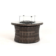 42″ Woven Round Fire Table with Glass Top, Burner & Fire Glass