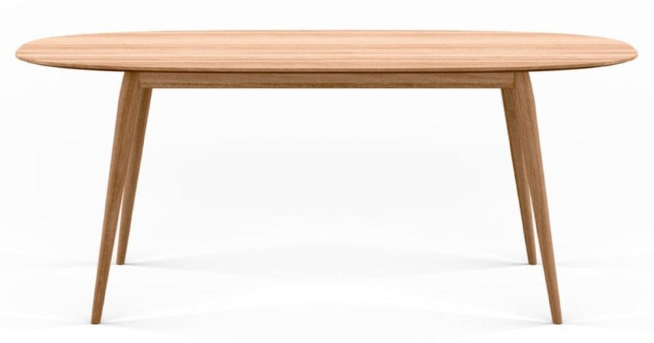A: A Danish-designed solid wood dining table with a superellipse shape that blends the benefits of round and rectangular forms for a social and elegant dining experience.