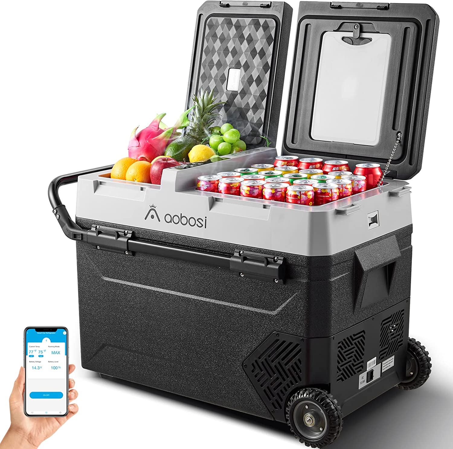 Compact & Spacious – The AOBOSI 42Qt (40L) 12V car fridge offers plenty of storage while maintaining a space-saving design, perfect for road trips, camping, and van life.