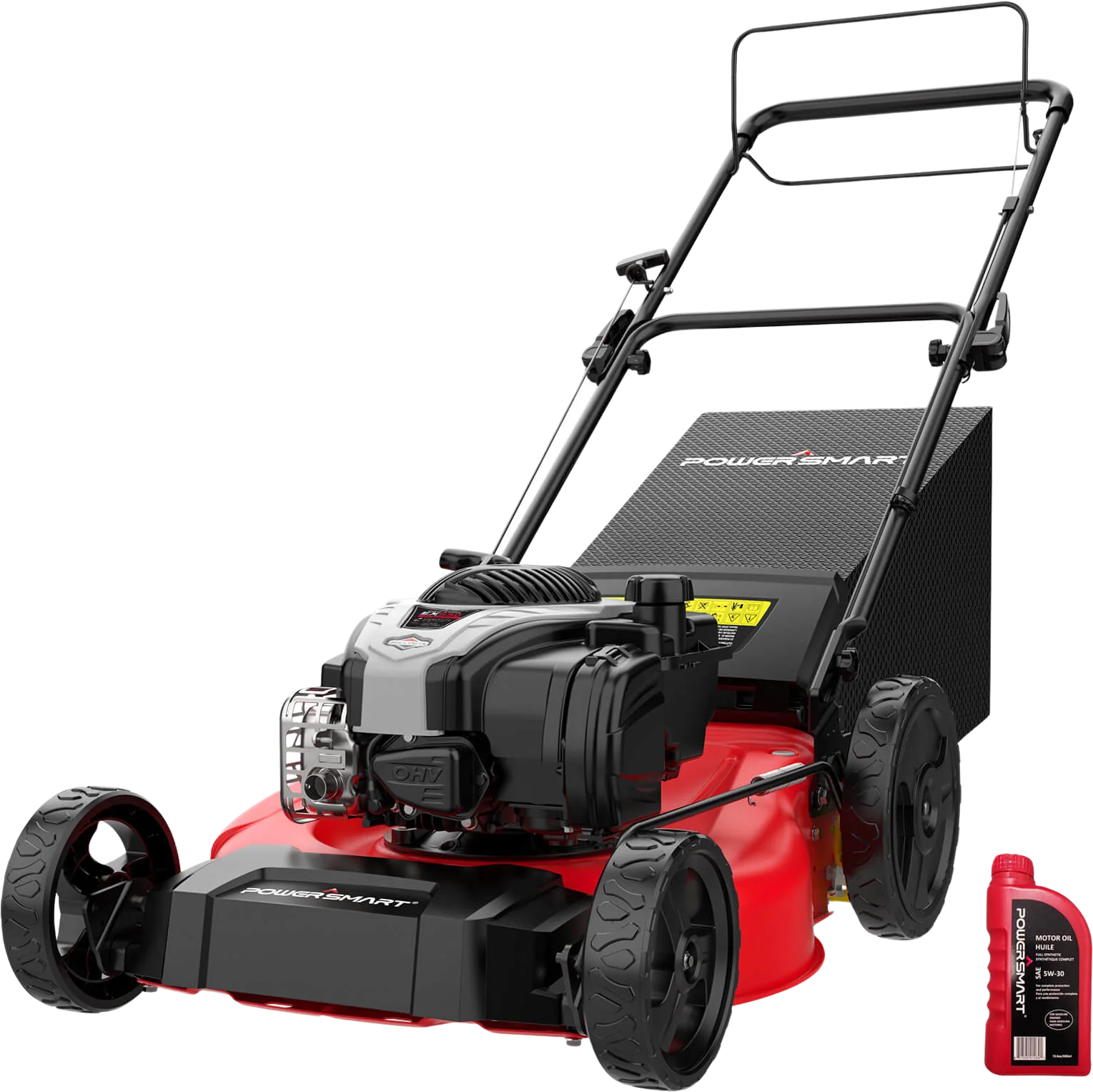 The Powersmart B8721S2 is a 140cc gas engine lawn mower that delivers unbeatable power and is capable of efficiently mowing a 1/2 acre yard on a single tank of gas. This mower is capable of mulching, rear-discharge, and bagging, 3 in 1 to meet the different cutting needs of different mowing seasons. The single lever height adjustment has 6 positions from 1.5" to 3.9", suitable for all types of grasses.
