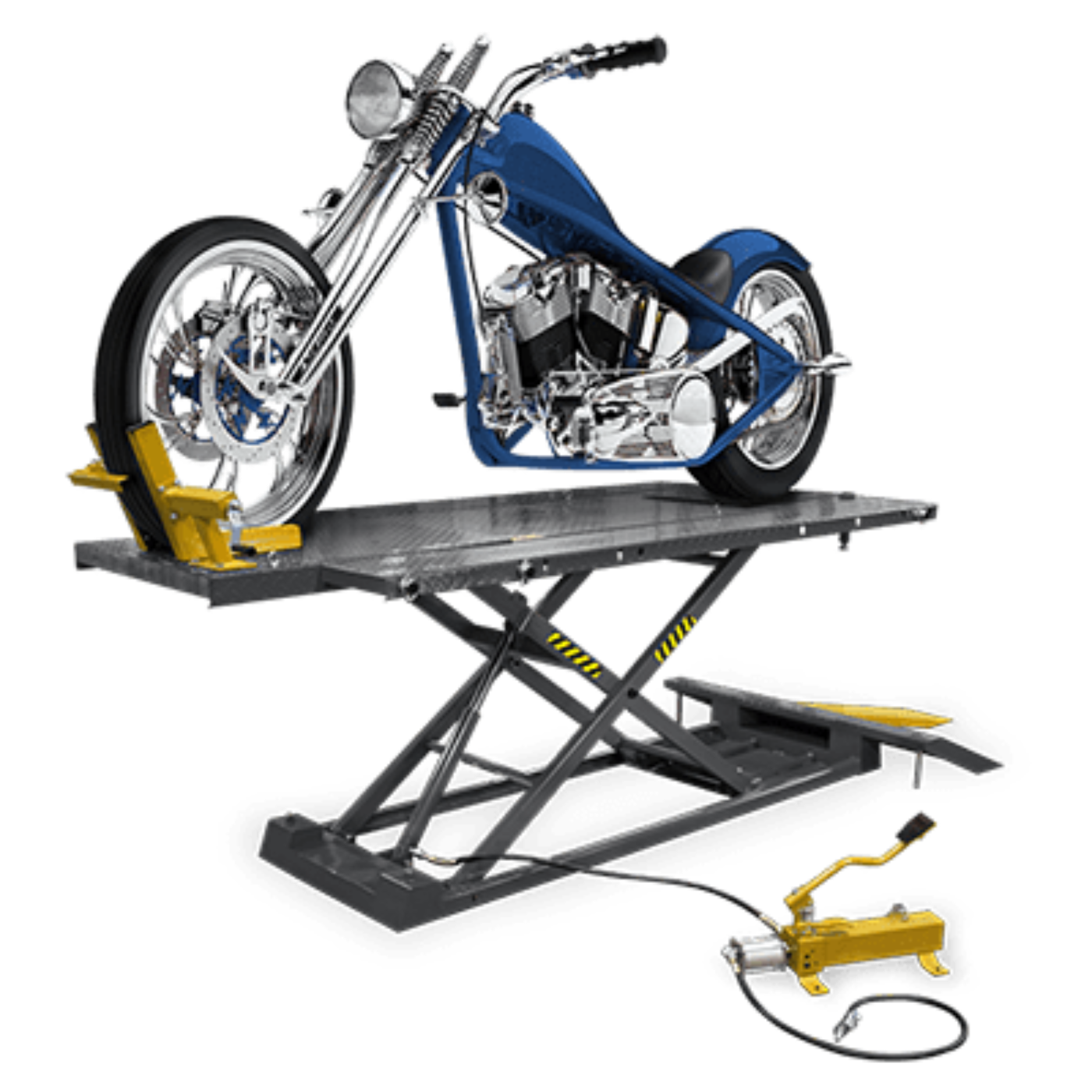 A: It’s a professional-grade motorcycle lift platform designed for servicing motorcycles, ATVs, and similar vehicles.