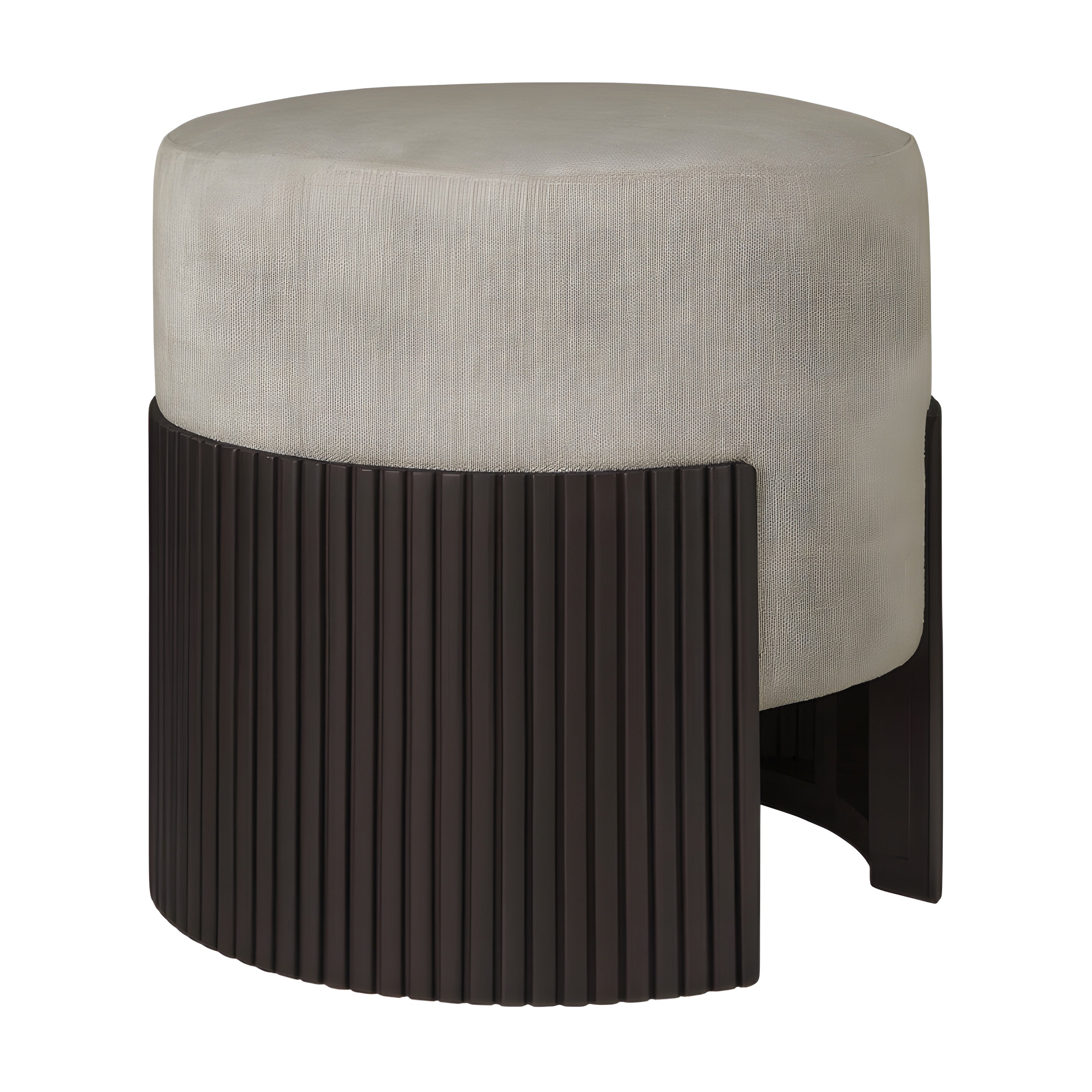 The Roller Max collection is remarkable in its design, distinguished with its stacked wood-stick effect. The pouf is a multifunctional item which encapsulates the comfortable upholstery cushion within the dark brown-varnished mahogany.