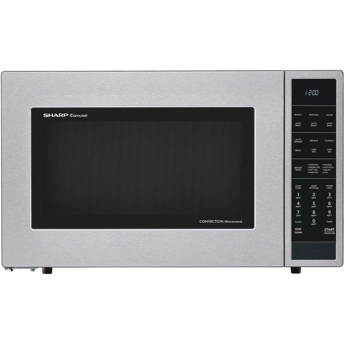 Reheat food and make tasty snacks with this certified refurbished Sharp SMC1585BS 1.5 Cu Ft 900W Convection Microwave Oven.This mid-sized, 1.5-cubic-foot, stainless steel Sharp Carousel microwave is more than a great choice for reheating and everyday cooking. It has a 15-4-inch diameter carousal turntable and popcorn preset button for fast cooking, defrosting, and reheating. This countertop microwave oven has plenty of handy features, including 12 included 1-touch options like auto defrost, reheat, 60 seconds, and popcorn, plus a touch control panel with white LED display, clock/timer, and child lock.Great for kitchens with limited space, this compact microwave oven measures 24.7 inches wide, 19 inches deep, and 14.9 inches high. You'll love this Sharp countertop microwave oven's easy-to-clean finish. The scratch-resistant glass door complements your style and your busy kitchen.