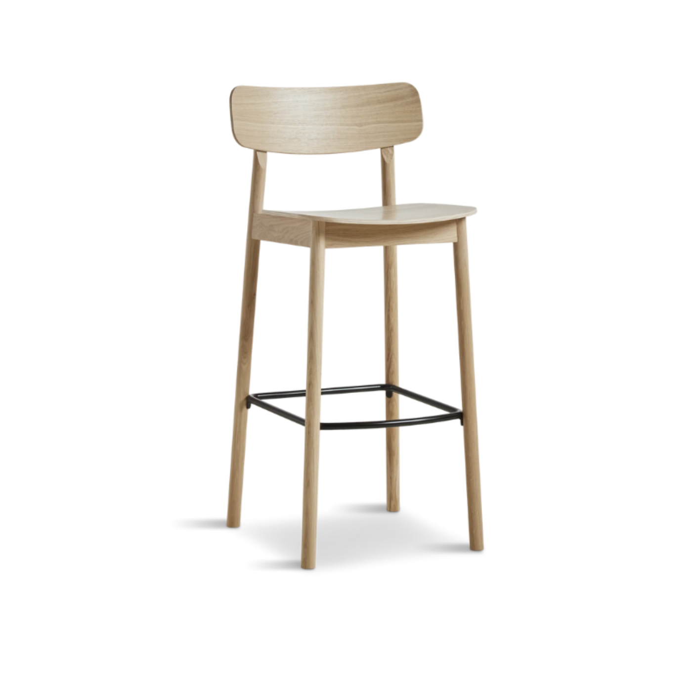 The Woud Soma Bar Stool is a minimalist, Scandinavian-inspired seating option designed by Kasper Nyman. It features clean lines, a curved backrest, and solid wood construction, offering both comfort and timeless style.