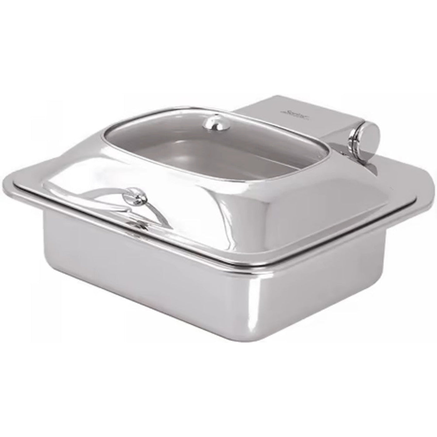 Elegant Design: Crafted from mirror-polished 18/8 stainless steel, this server features a sleek square design complemented by a clear glass window, enhancing visibility and presentation.