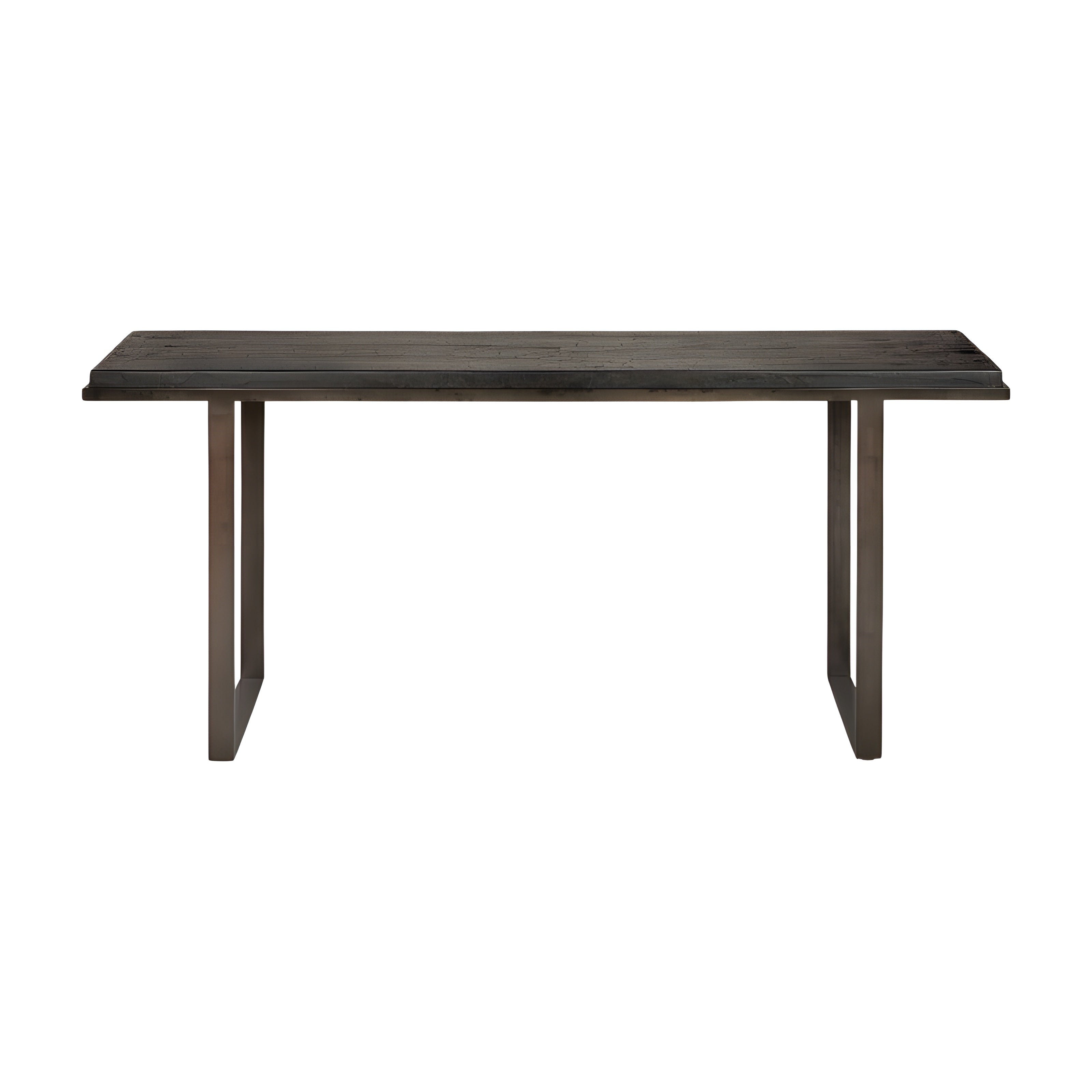 A masterclass in contrast—thick handcrafted top meets light, minimalist metal base