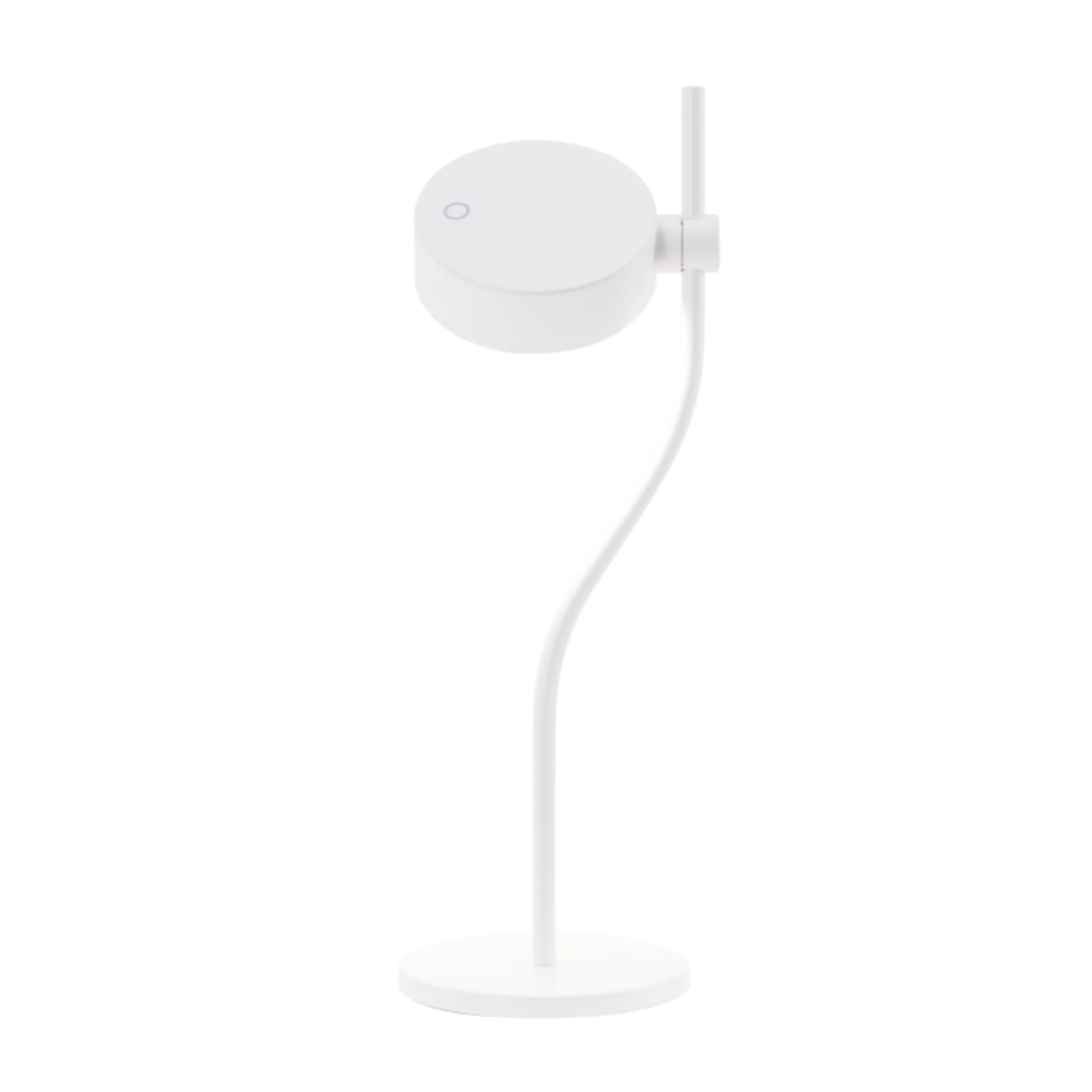 A: A modern, circular LED table lamp with adjustable brightness, perfect for desks, bedside tables, or workspaces.
