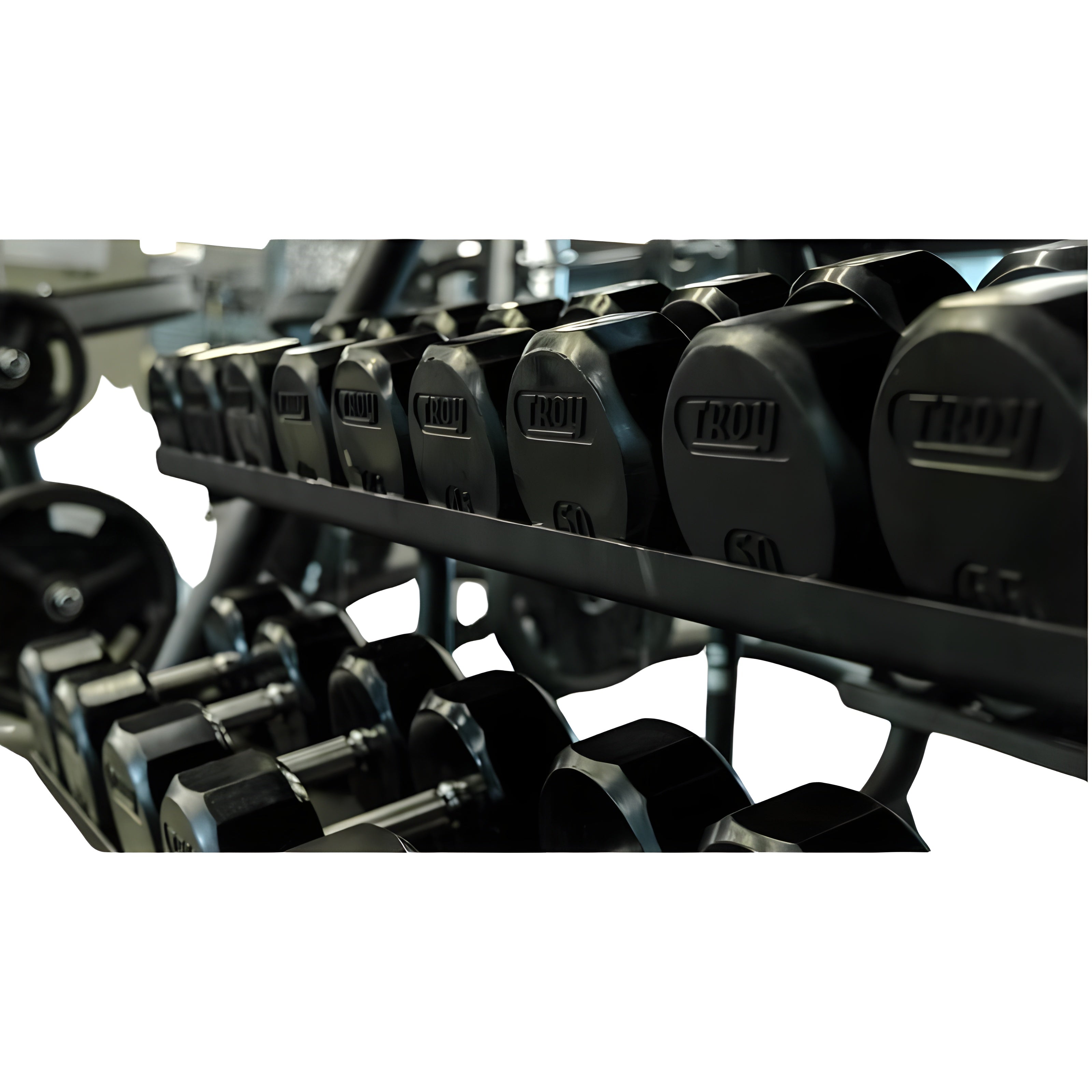 Want a Durable and Organized Rubber Dumbbell Set with Rack? Discover the TROY COMMPAC-TSDR50!The TROY COMMPAC-TSDR50 5-50 lb Rubber Dumbbell Set with Rack is your ultimate solution for a tidy and efficient workout space. This premium set includes 10 pairs of Troy TSD-R 12-sided rubber-encased dumbbells, ranging from 5 lbs to 50 lbs in 5 lb increments, stored neatly on a robust DR-10 2-tier saddle rack. Built to endure heavy use, these rubber dumbbells minimize noise, protect floors, and provide superior performance for any fitness level.UPGRADE YOUR TRAINING SETUP! Invest in the TROY COMMPAC-TSDR50 5-50 lb Rubber Dumbbell Set with Rack for a premium, durable, and highly functional workout solution. Designed for both home and commercial fitness environments, thisUPGRADE YOUR TRAINING SETUP! Invest in the TROY COMMPAC-TSDR50 5-50 lb Rubber Dumbbell Set with Rack for a premium, durable, and highly functional workout solution. Designed for both home and commercial fitness environments, this