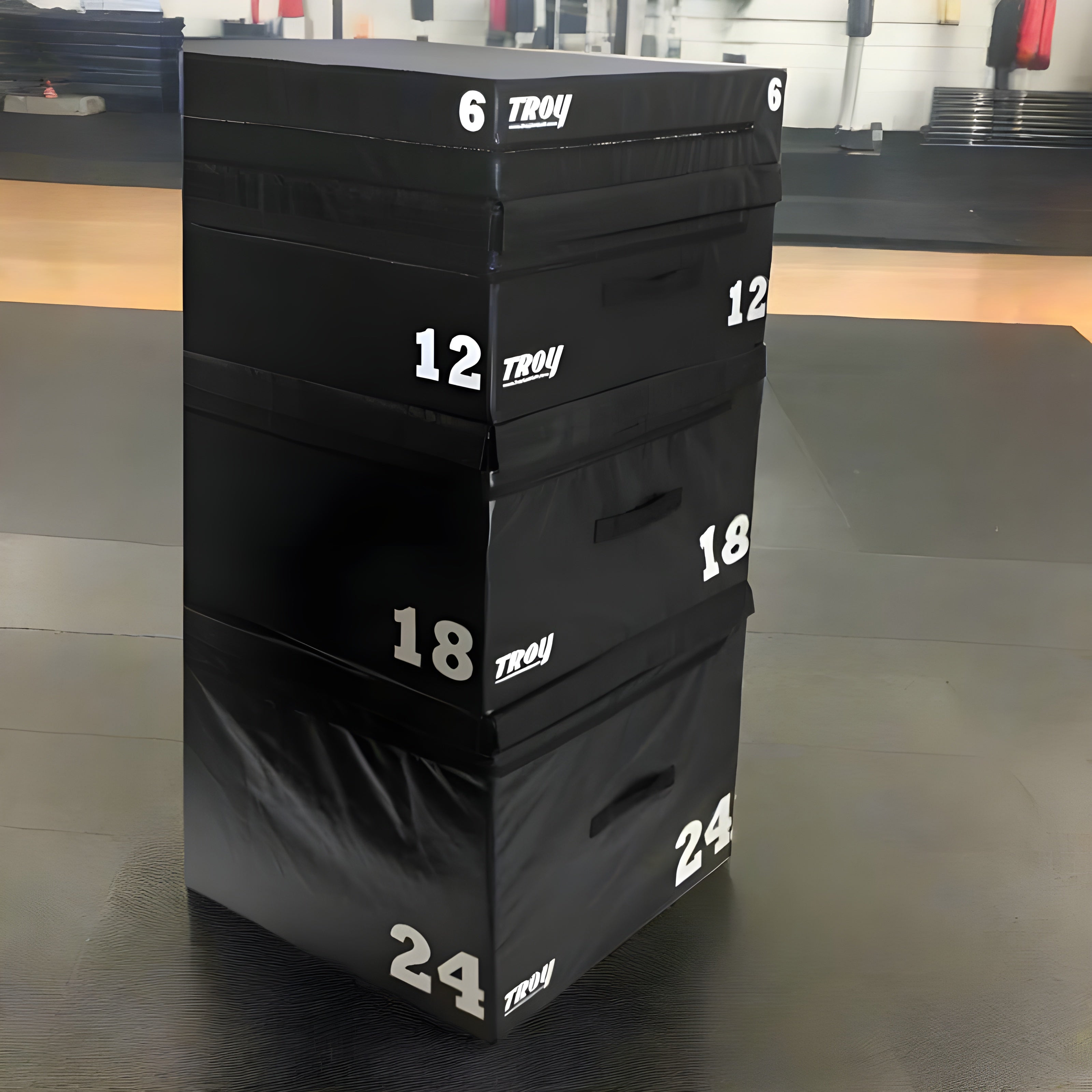 Looking for Safe, Effective Plyo Boxes? Try the TROY T-PLYO-PAC Soft Foam Stackable Plyo Box Set!If you want to take your plyometric training to the next level, the TROY T-PLYO-PAC Soft Foam Stackable Plyo Box Set is a top choice. Designed with safety and performance in mind, these foam plyo boxes offer a gentle landing, reducing impact on your knees, shins, and joints. With a set of four stackable boxes at varying heights—6", 12", 18", and 24"—you can easily customize your workout intensity. The ultra-dense foam and heavy-duty vinyl cover make these plyo boxes durable and ideal for any fitness environment, allowing you to safely push your limits.UPGRADE YOUR TRAINING SETUPInvest in the TROY T-PLYO-PAC Soft Foam Stackable Plyo Box Set to add versatility and safety to your plyometric routine. These foam plyo boxes are designed for durability and performance, making them a smart addition to any gym or home workout space. Start building a safer, more efficient training environment today with this premium plyo box set!