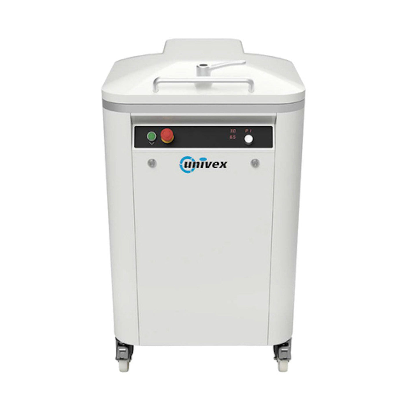 The Univex AQD24 Automatic Dough Divider is easy to use. It automatically divides dough. It produces 24 equally weighted and shaped pieces at once and in just 7 seconds! This means it can produce a total of 2800 pieces per hour. The AQD24 is a strong hydraulic machine with simple controls. The controls allow operators to simply close the lid to begin the cycle. It can be set for multiple languages, giving it greater flexibility. This dough divider has a painted steel construction.