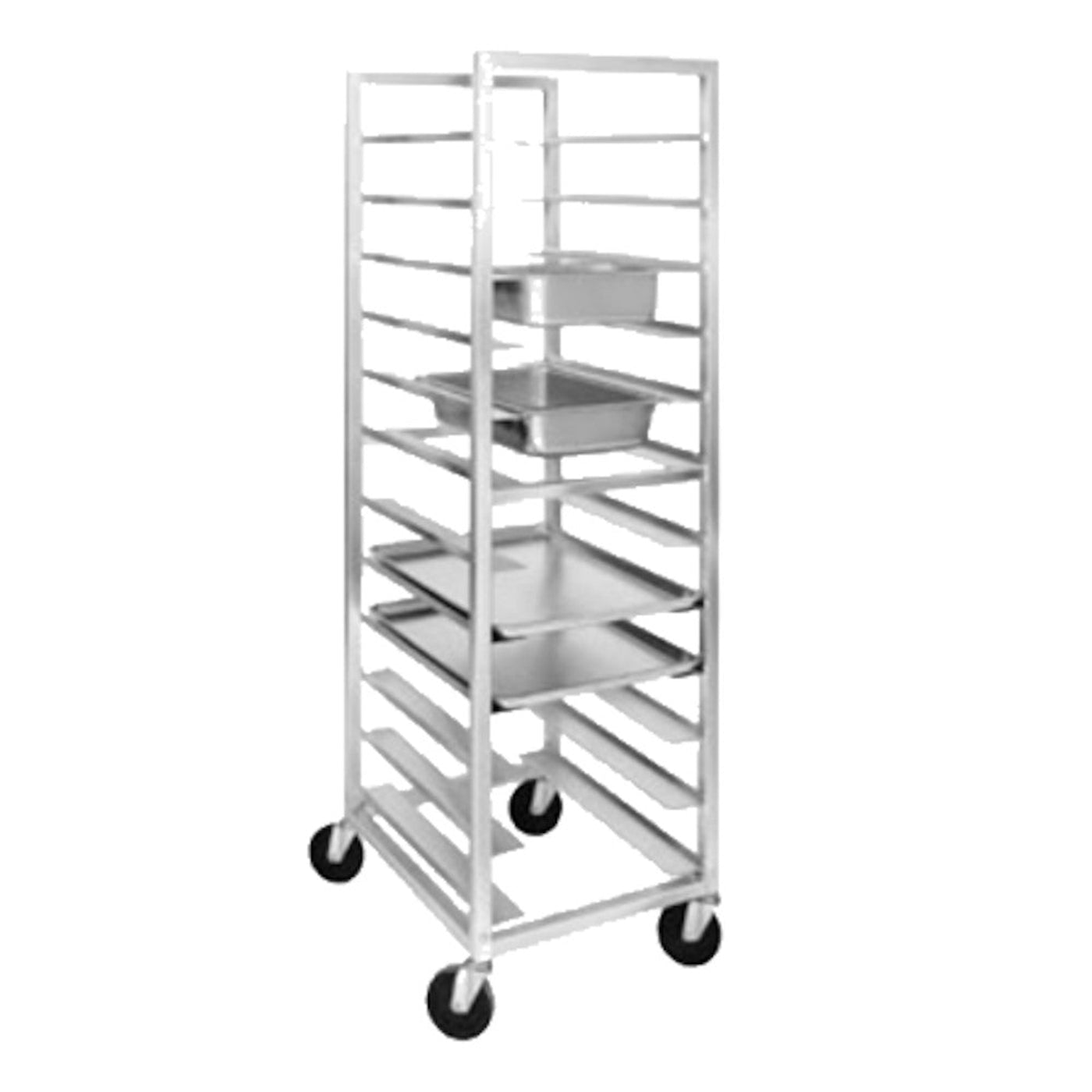 Designed for holding, storing, and transporting bun and steamtable pans, the Channel UTR-20 an American-made universal rack. Made of high tensile extruded type 6063-T5 alloy aluminum, it has a lifetime warranty against rust and corrosion. It comes with 5” non-marking swivel casters for easy maneuverability.