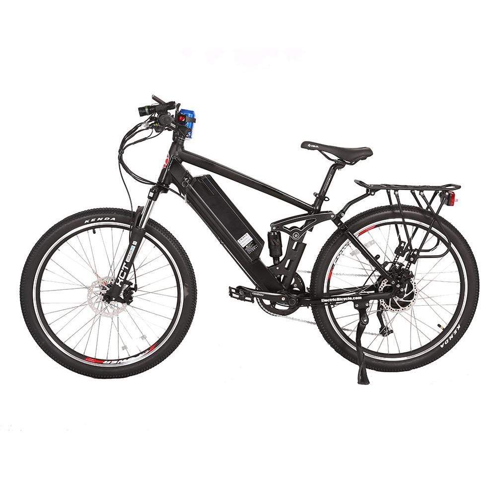 The Rubicon 48 Volt Lithium Powered Electric Mountain Bicycle is a Lithium Battery powered Electric Bicycle cranking out 500 Watts from the Bafang High Torque Zero Resistance Clutch Motor. This bike features a lightweight, compact lithium LiPo4 48 volt 10.4 Ah integrated battery pack providing a considerable amount of power greater than our 24 volt or 36-volt models. This bike comes with everything Aluminum - every bolt, every nut, every nipple, every spoke. That means no rust! The 100% hand welded lightweight aluminum frame bicycle has Atlus Shimano 9-Speed Gears & Shifting System, Suntour XCT Front Suspension & KS Rear Shock Suspension, aluminum rims with quick release axle on the front and a waterproof quick disconnect on the rear.